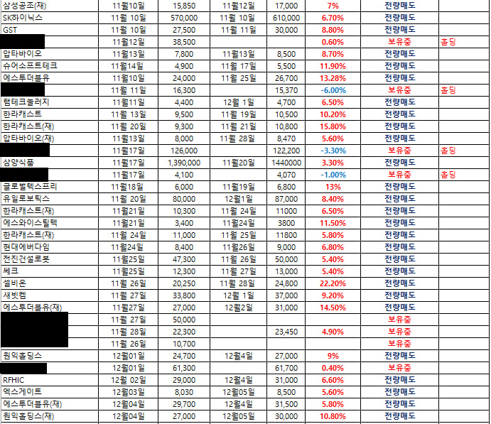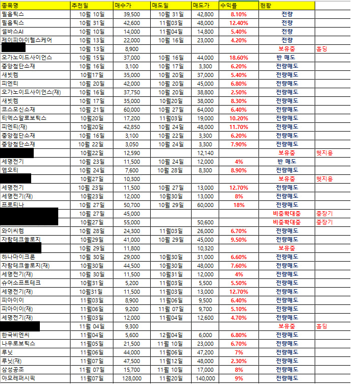 코스닥이 잘 올라와주어 11월 기존보유종목 3종목 높은수익으로